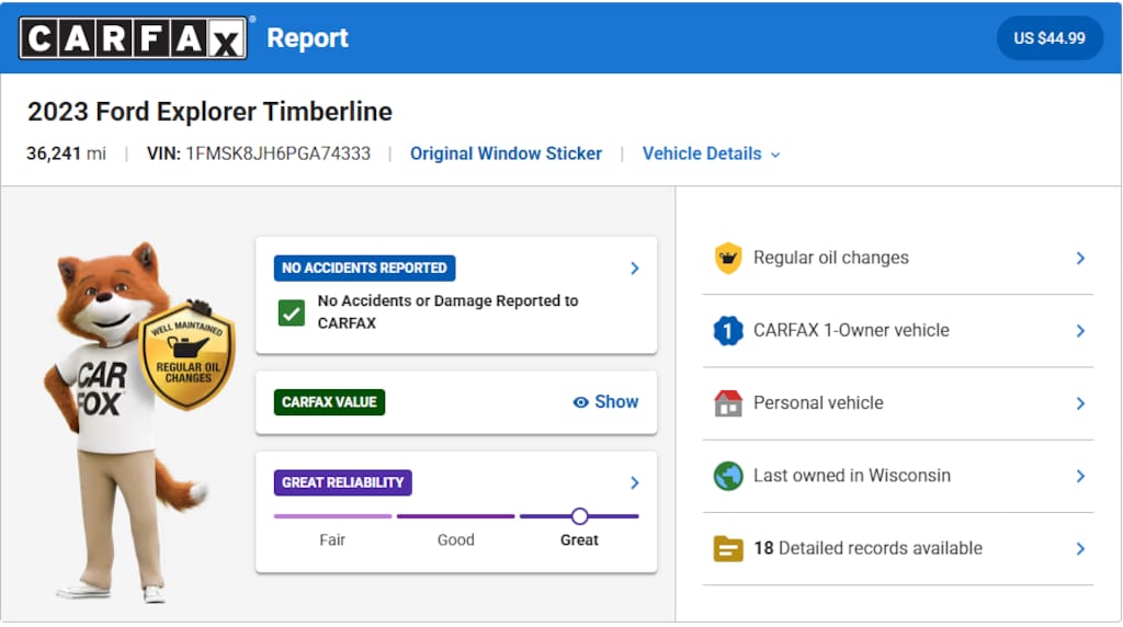- Clean Carfax History Report